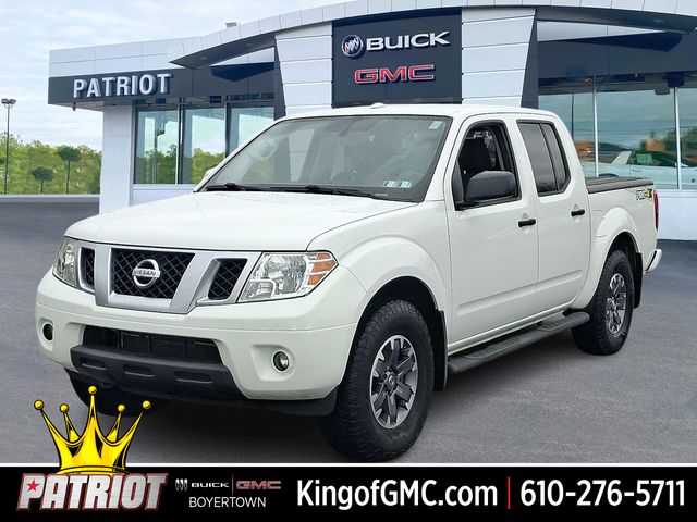 2018 Nissan Frontier PRO-4X Glacier White 4WD, 10 Speakers, 3.357 Axle Ratio, 4-Wheel Disc Brakes, ABS brakes, Air Conditioning, Alloy wheels, AM/FM radio: SiriusXM, Anti-whiplash front head restraints, Auto-dimming Rear-View mirror, Automatic temperature control, Bed Extender, Bumpers: body-color, CD player, Compass, Delay-off headlights, Driver door bin, Driver vanity mirror, Dual front impact airbags, Dual front side impact airbags, Electronic Stability Control, Exterior Parking Camera Rear, Floor Mats, Front anti-roll bar, Front Bucket Seats, Front Center Armrest, Front dual zone A/C, Front fog lights, Front reading lights, Front wheel independent suspension, Fully automatic headlights, Heated Front Bucket Seats, Heated front seats, Illuminated entry, Leather Appointed Seat Trim, Leather Shift Knob, Low tire pressure warning, Navigation System, Occupant sensing airbag, Outside temperature display, Overhead airbag, Overhead console, Panic alarm, Passenger door bin, Passenger vanity mirror, Power door mirrors, Power steering, Power windows, Premium Cloth Seat Trim, Radio data system, Radio: Rockford Fosgate Premium Audio System, Rear Parking Sensors, Rear step bumper, Remote keyless entry, Security system, Sliding Bed Extender/Trailer Hitch Package, Speed control, Speed-sensing steering, Split folding rear seat, Steering wheel mounted audio controls, Tachometer, Tilt steering wheel, Traction control, Trip computer, Variably intermittent wipers, Voltmeter, Wheels: 16" Off-Road Design Machine-Finish Alloy, 4WD.At Patriot Buick-GMC, we have the best selection of used and GM -Certified preowned vehicles. Conveniently located at the intersection of routes 100 & 73. We are one of the best dealerships, serving Allentown, Reading and Pottstown.